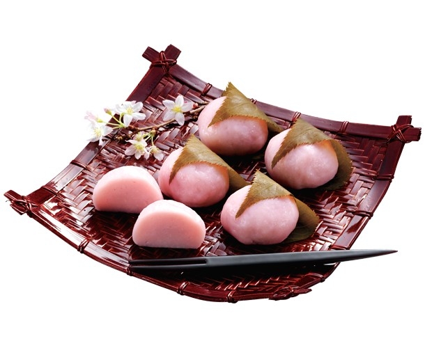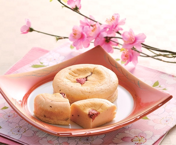 厚焼き玉子の中に桜葉を練り込み、桜の花を添えました。